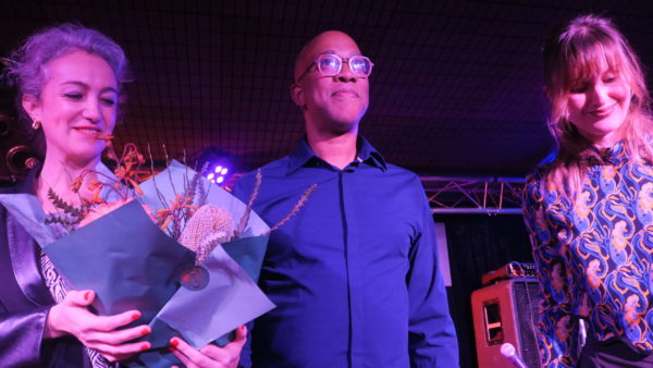Il y a du public. Deux hommes asiatiques près du mur à quelques rangées de chaises de la scène. Deux ou trois enfants avec leurs parents. Un homme juste à ma gauche, à environ un mètre du piano. Assez austère, l’homme, la soixantaine d’années, se réverbère dans le piano. Il tient très sérieusement son livre ouvert. Il le refermera très vite avec l’arrivée du Marie Jouhaud Trio. Et il se dandinera ensuite lors du concert. Parce-que Marie Jouhaud prend tout de suite le public par la main en montant sur scène.